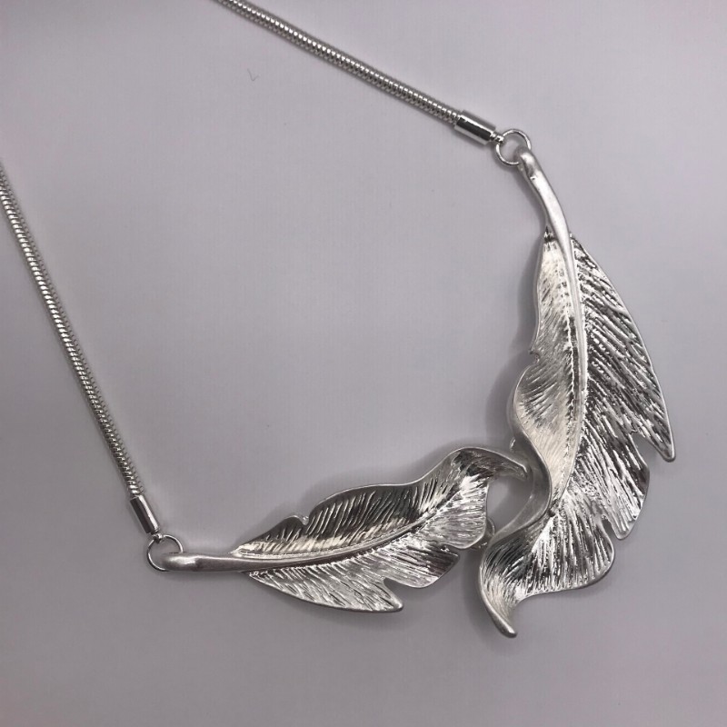 Chunky feather shape pendant necklace, 16” necklace with extender chain,