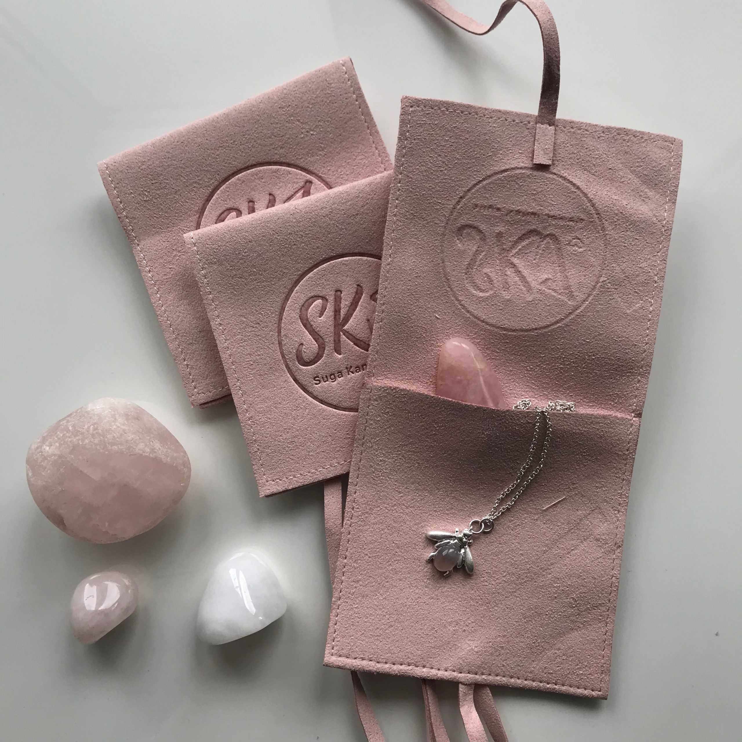 A gorgeous soft pink pouch to add a touch of elegance to your piece of jewellery.