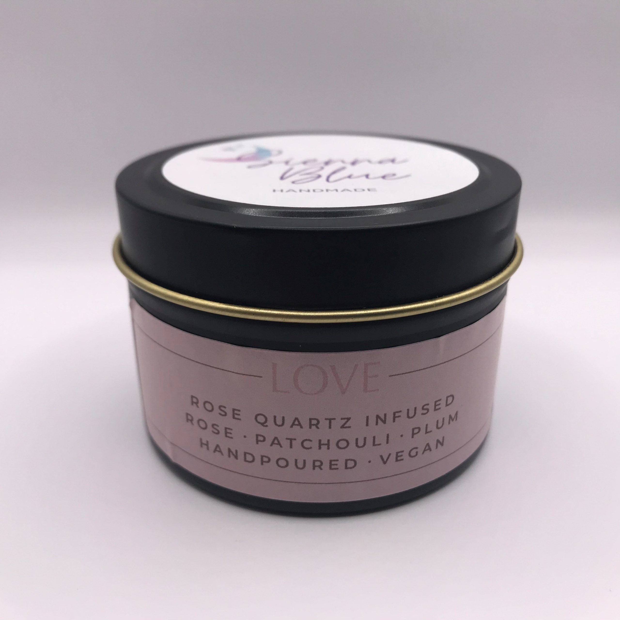 Beautifully fragranced with Rose, Plum and Patchouli, infused with Rose Quartz tumblestones. Decorated with dried rose buds, a sprinkling of dried rose petals and a little bit of sparkle!